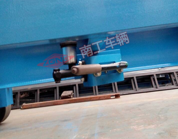 15T20尺集装箱拖车南工车辆非标订制,本集装箱拖车承重15T,平台安装集装箱角件,可安装20尺集装箱;应用场合:集装箱或特地设备短距离周转运输。