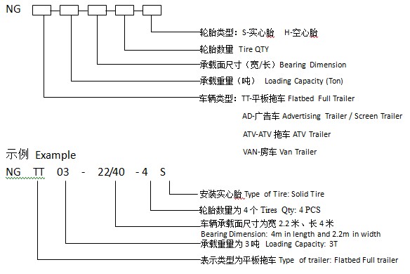 型号Model No. | 承重平台尺寸 Size [米/Meter] | 高 Height [米/Meter] | 承重重量 Payload Capacity [吨/Ton] | 轮胎类型 Type of Tire | 轮胎数量Tire QTY | 主架构钢结构Cross Member | 主梁钢结构 Main Beam | |